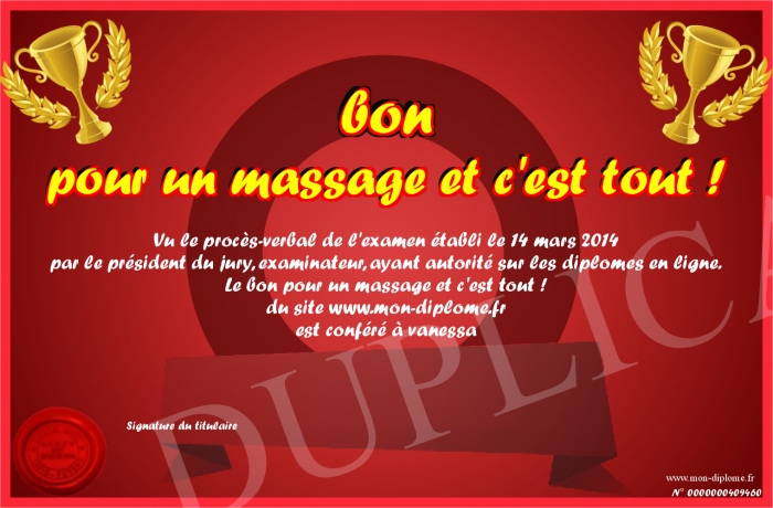 Envoyez par email votre bon pour un massage et c'est tout ! personalisé