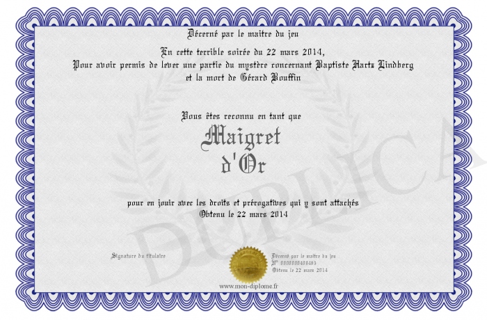 Envoyez par email votre Maigret d'Or personalisé