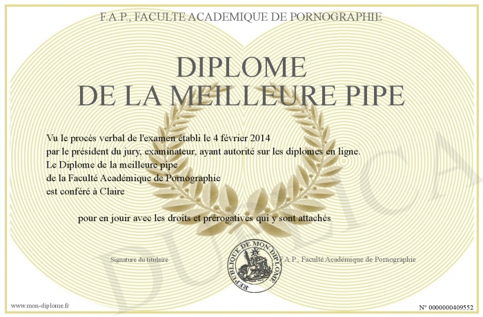 Envoyez par email votre Diplôme de la meilleure pipe personalisé