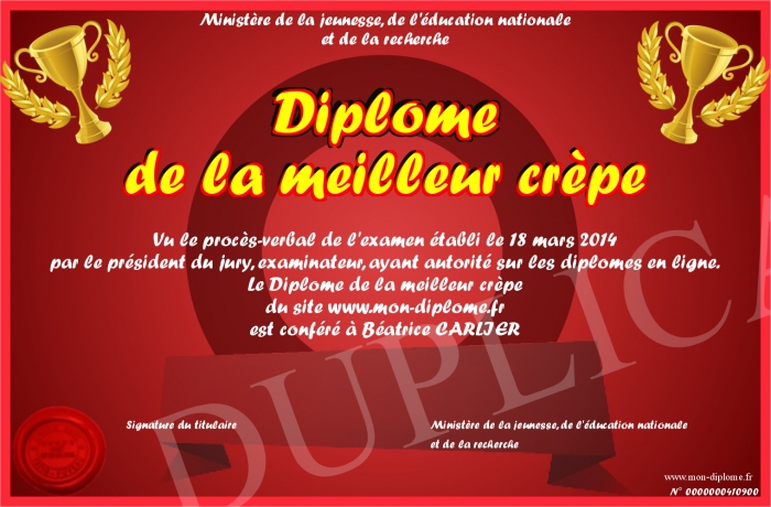 Envoyez par email votre Diplôme de la meilleur crèpe personalisé