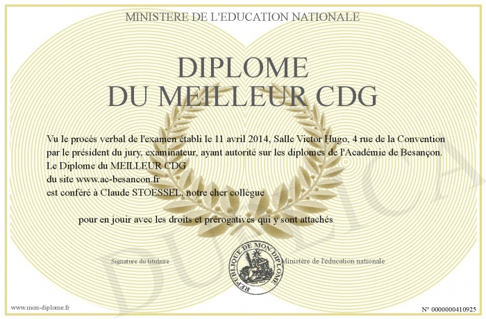 Envoyez par email votre Diplôme du MEILLEUR CDG personalisé