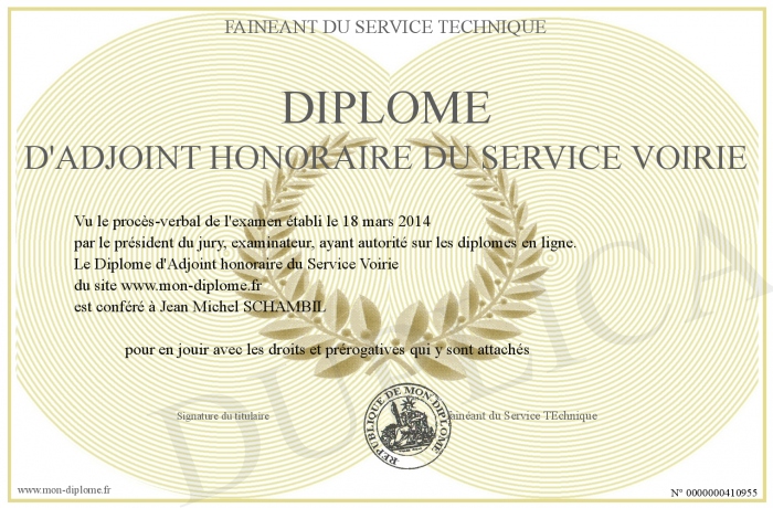 Envoyez par email votre Diplôme d'Adjoint honoraire du Service Voirie personalisé