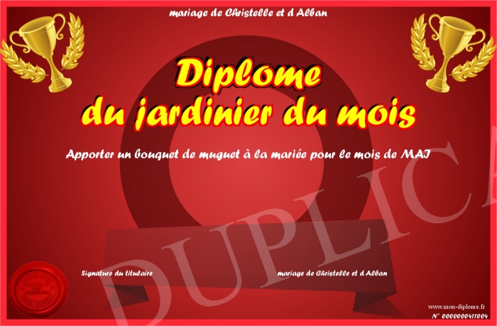 Envoyez par email votre Diplôme du jardinier du mois personalisé