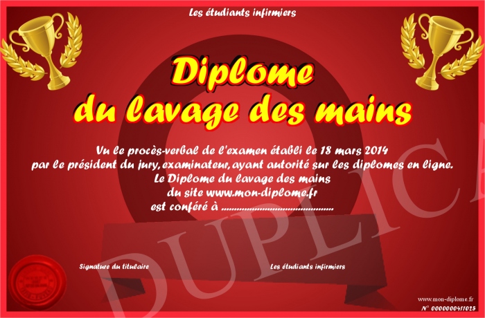 Envoyez par email votre Diplôme du lavage des mains personalisé