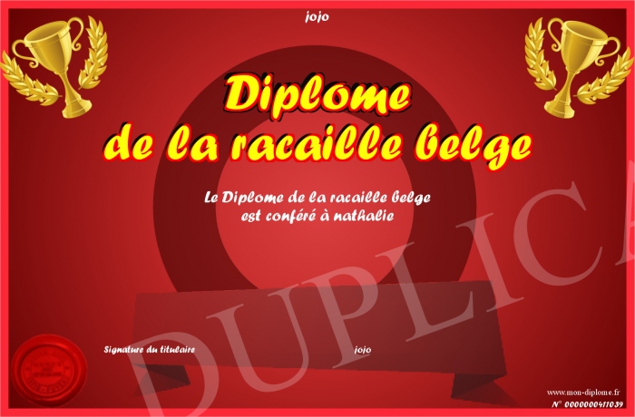 Envoyez par email votre Diplôme de la racaille belge personalisé