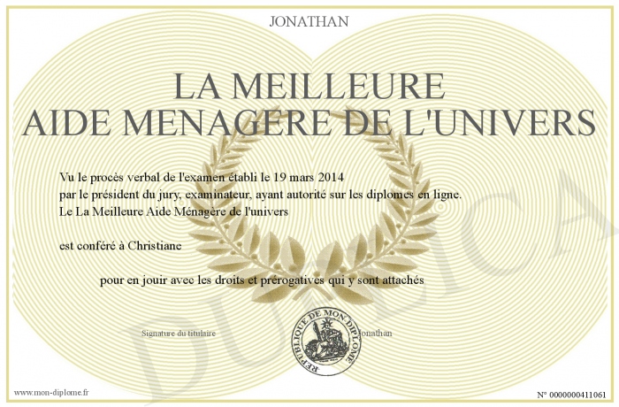 Envoyez par email votre La Meilleure Aide Ménagère de l'univers personalisé