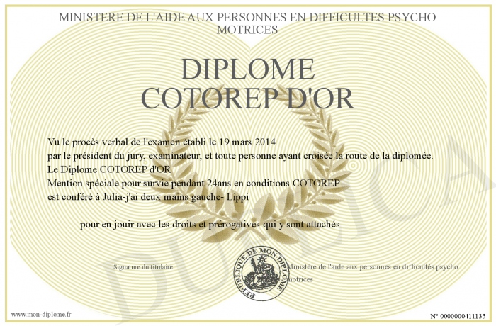 Envoyez par email votre Diplôme COTOREP d'OR personalisé