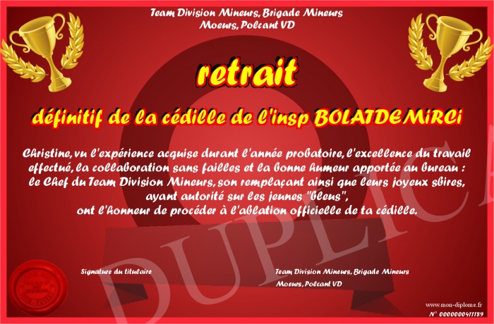 envoyé par le Team Division Mineurs, Brigade Mineurs-Moeurs, Polcant VD !