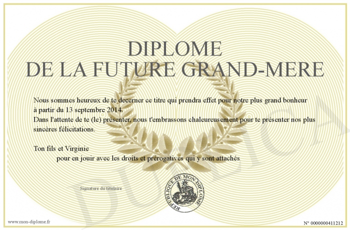 Envoyez par email votre Diplôme de la future Grand-Mère personalisé