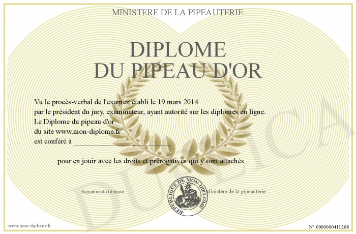 Envoyez par email votre Diplôme du pipeau d'or personalisé