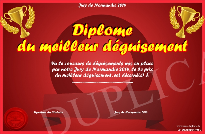 Envoyez par email votre Diplôme du meilleur déguisement personalisé
