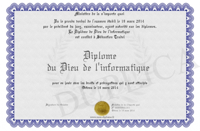 Envoyez par email votre Diplôme du Dieu de l'informatique personalisé