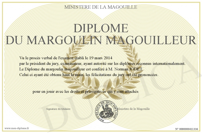 Envoyez par email votre Diplôme du margoulin magouilleur personalisé