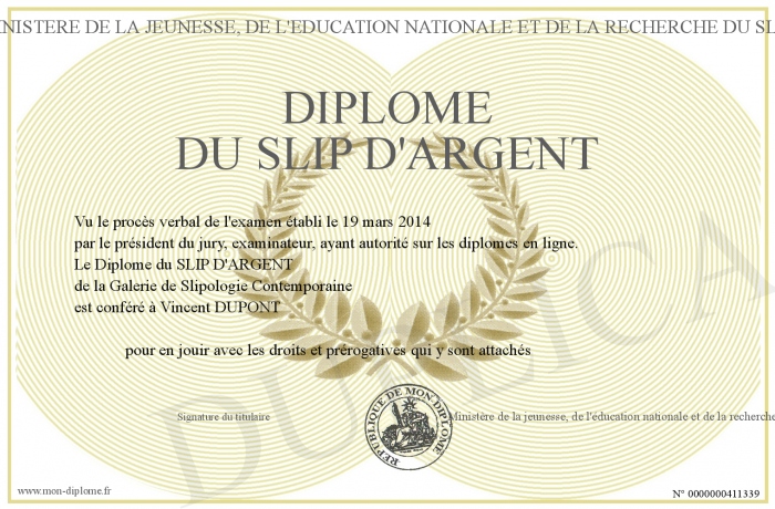 Envoyez par email votre Diplôme du SLIP D'ARGENT personalisé