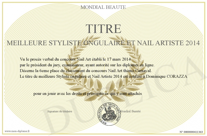 Envoyez par email votre Titre meilleure Styliste ongulaire et Nail Artiste 2014 personalisé