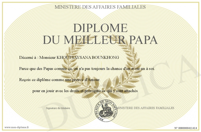 Envoyez par email votre DIPLOME DU MEILLEUR PAPA personalisé