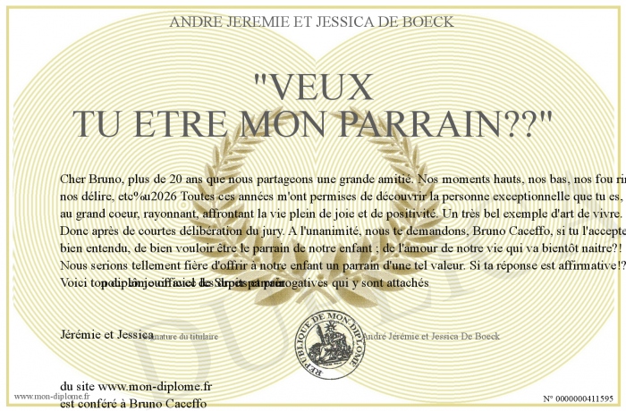 Envoyez par email votre -Veux tu etre mon parrain??- personalisé