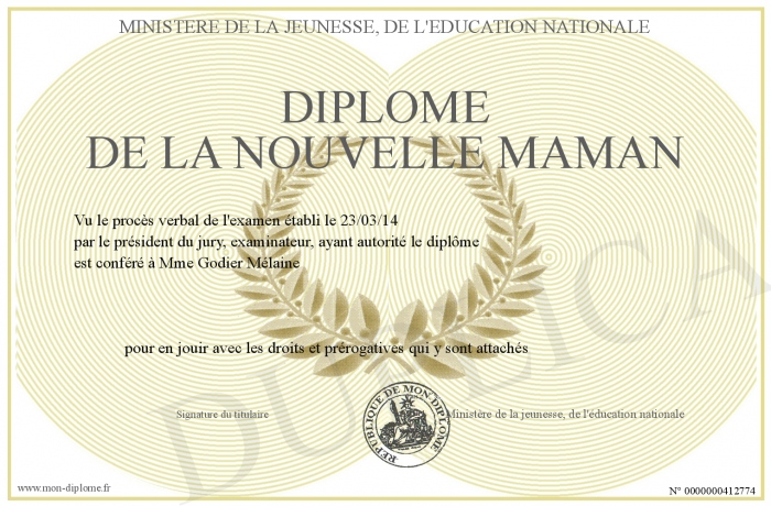 Envoyez par email votre Diplôme de la nouvelle maman personalisé
