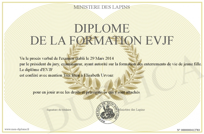 Envoyez par email votre Diplôme de la formation EVJF personalisé