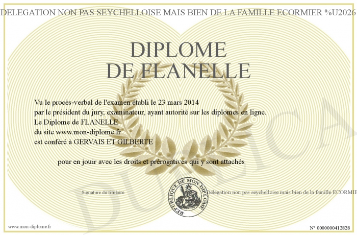 Envoyez par email votre Diplôme de FLANELLE personalisé