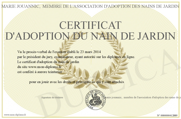 Envoyez par email votre certificat d'adoption du nain de jardin personalisé