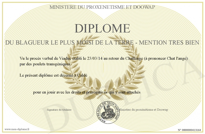 Envoyez par email votre Diplôme du blagueur le plus moisi de la Terre - Mention Très bien personalisé