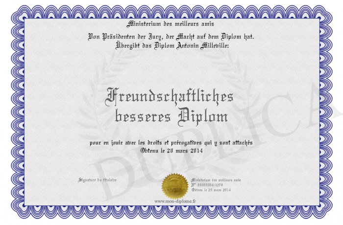 Envoyez par email votre Freundschaftliches besseres Diplom personalisé