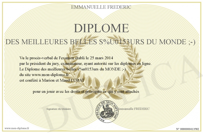 Envoyez par email votre Diplôme des meilleures belles soeurs du MONDE ;-) personalisé