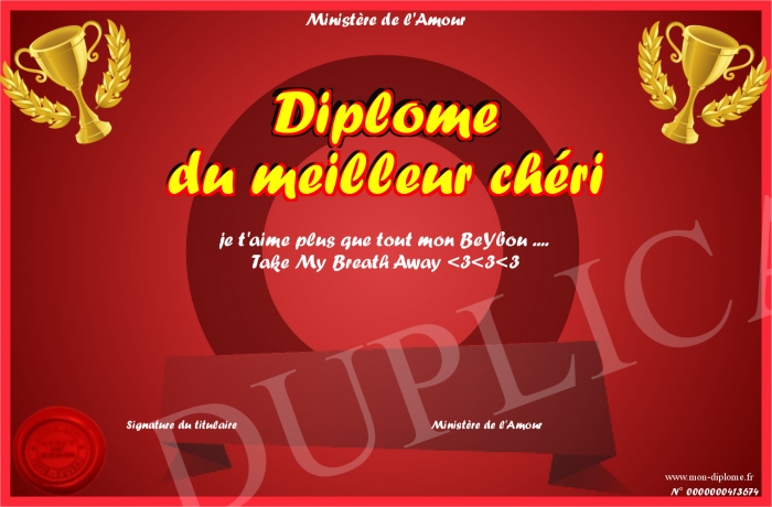 Envoyez par email votre Diplôme du meilleur chéri personalisé