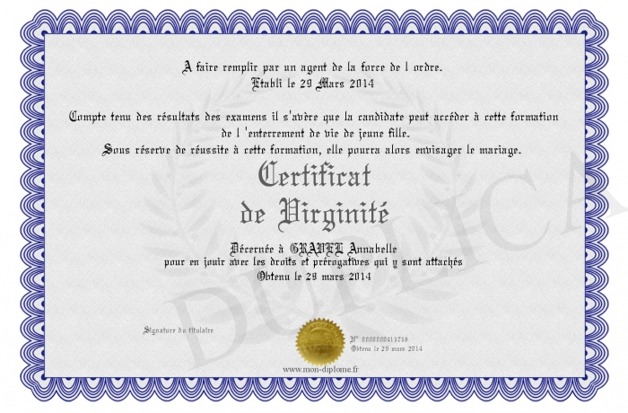Pour demander la suppression du diplome affiché ci-haut, cliquez ici.