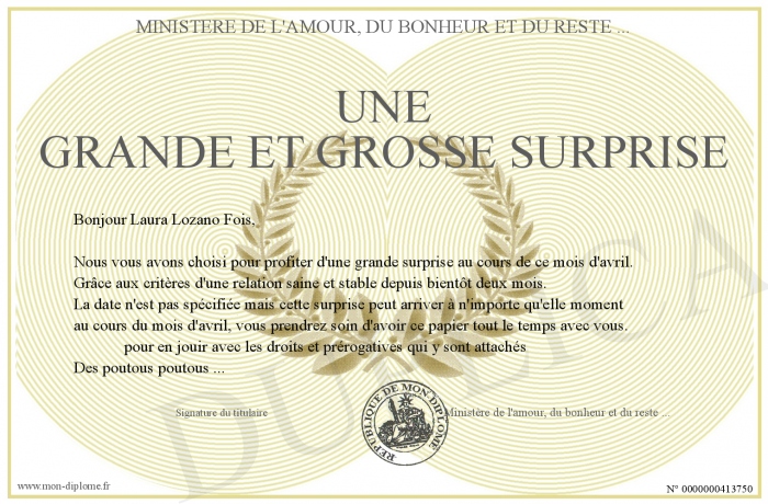 Envoyez par email votre Une grande et grosse surprise personalisé
