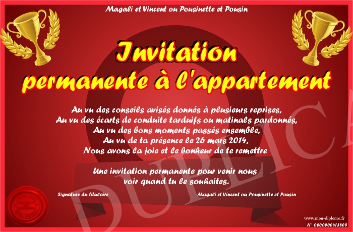 Envoyez par email votre Invitation permanente à l'appartement personalisé