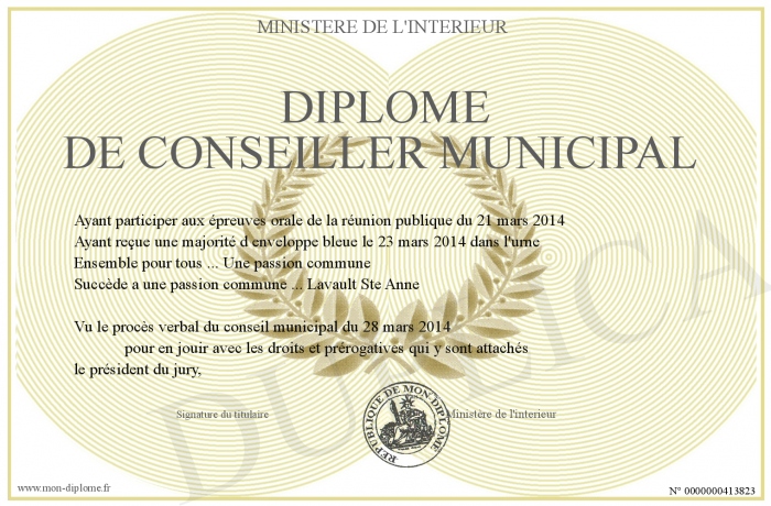 Envoyez par email votre Diplôme de conseiller municipal personalisé