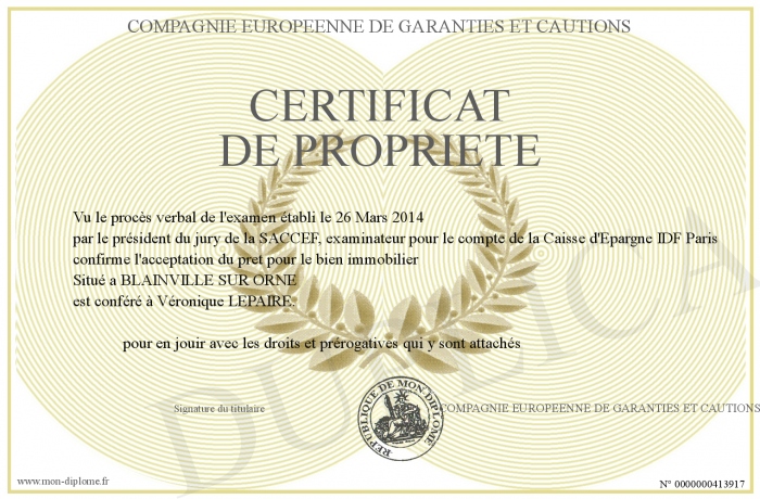Envoyez par email votre CERTIFICAT DE PROPRIETE personalisé