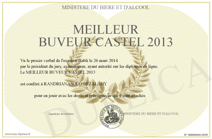 Envoyez par email votre MEILLEUR BUVEUR CASTEL 2013 personalisé