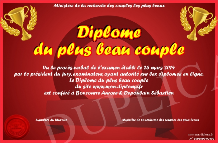 Envoyez par email votre Diplôme du plus beau couple personalisé