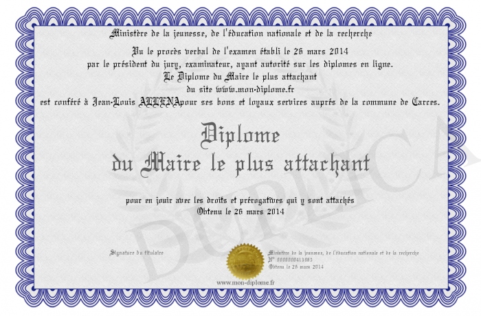 Envoyez par email votre Diplôme du Maire le plus attachant personalisé