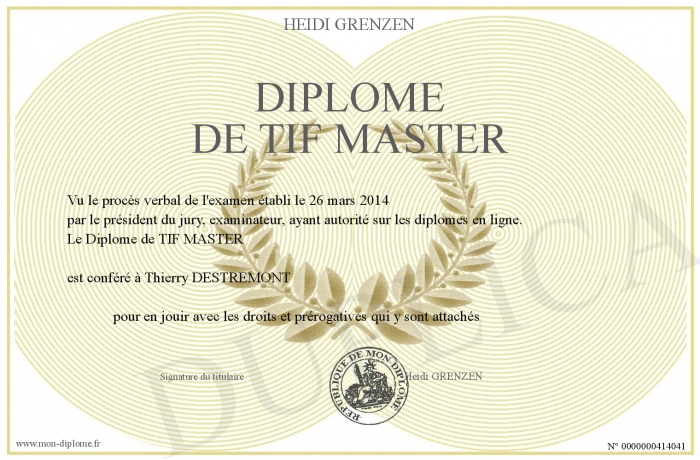 Envoyez par email votre Diplôme de TIF MASTER personalisé