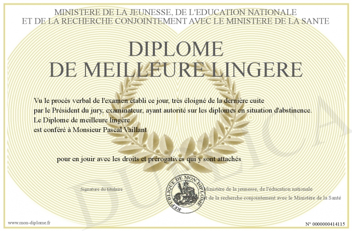 Envoyez par email votre Diplôme de meilleure lingère personalisé