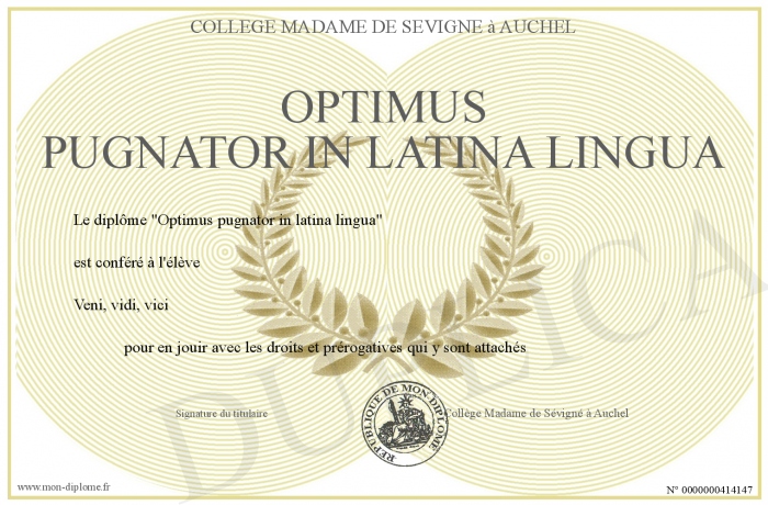 Envoyez par email votre Optimus pugnator in latina lingua personalisé