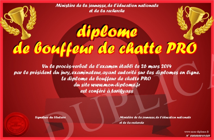 Envoyez par email votre diplome de bouffeur de chatte PRO personalisé