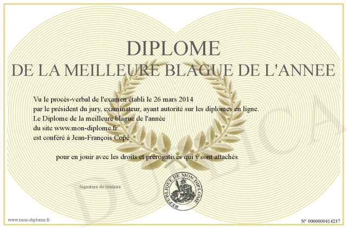 Envoyez par email votre Diplôme de la meilleure blague de l'année personalisé