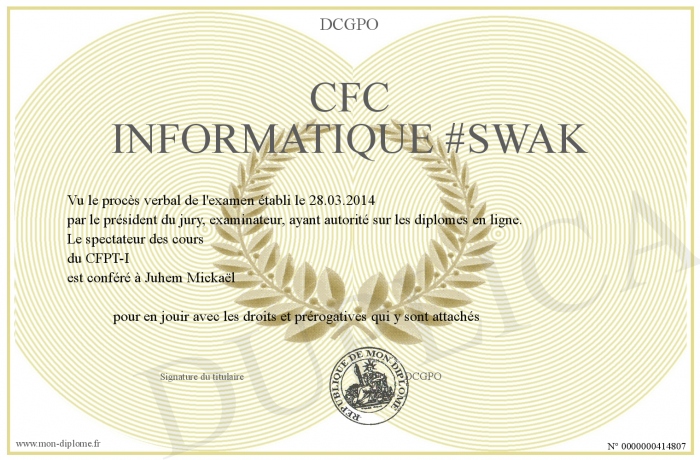 Envoyez par email votre CFC Informatique #SWAK personalisé