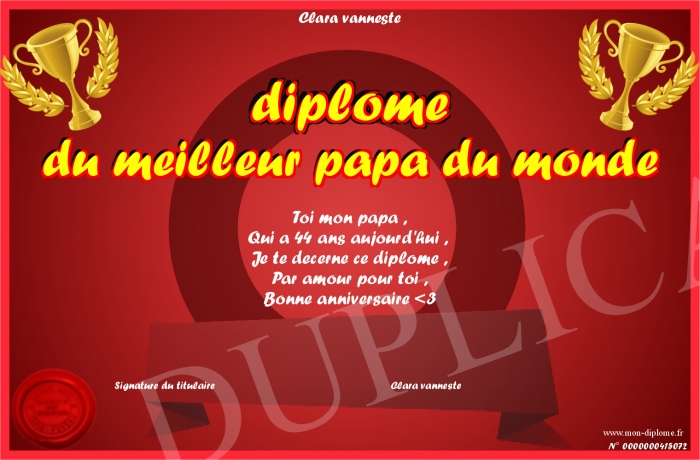 Envoyez par email votre diplome du meilleur papa du monde personalisé