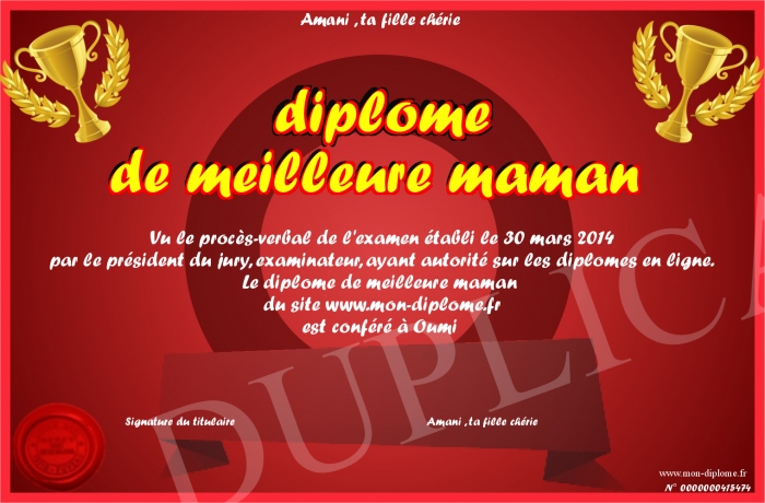 Envoyez par email votre diplôme de meilleure maman personalisé