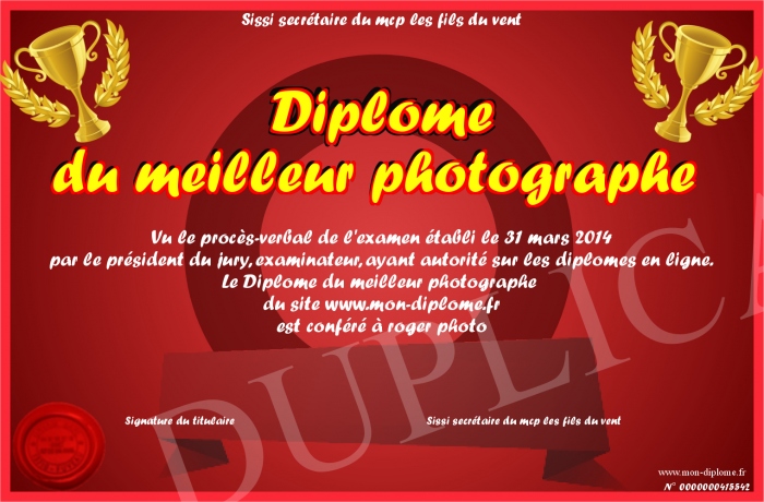 Envoyez par email votre Diplôme du meilleur photographe personalisé