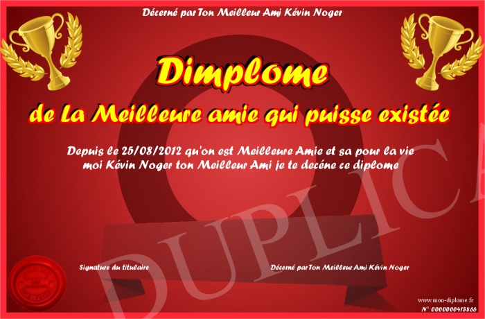 Envoyez par email votre Dimplome de La Meilleure amie qui puisse existée personalisé