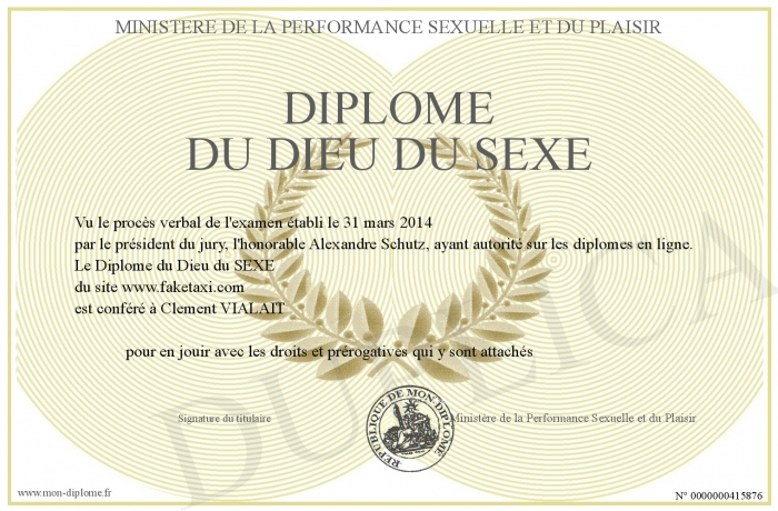 Envoyez par email votre Diplôme du Dieu du SEXE personalisé