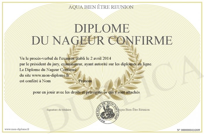 Envoyez par email votre Diplôme du Nageur Confirmé personalisé