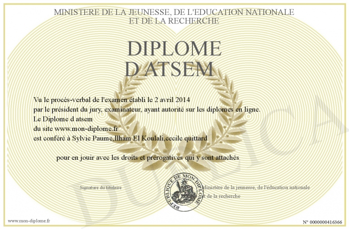 Envoyez par email votre Diplôme d atsem personalisé